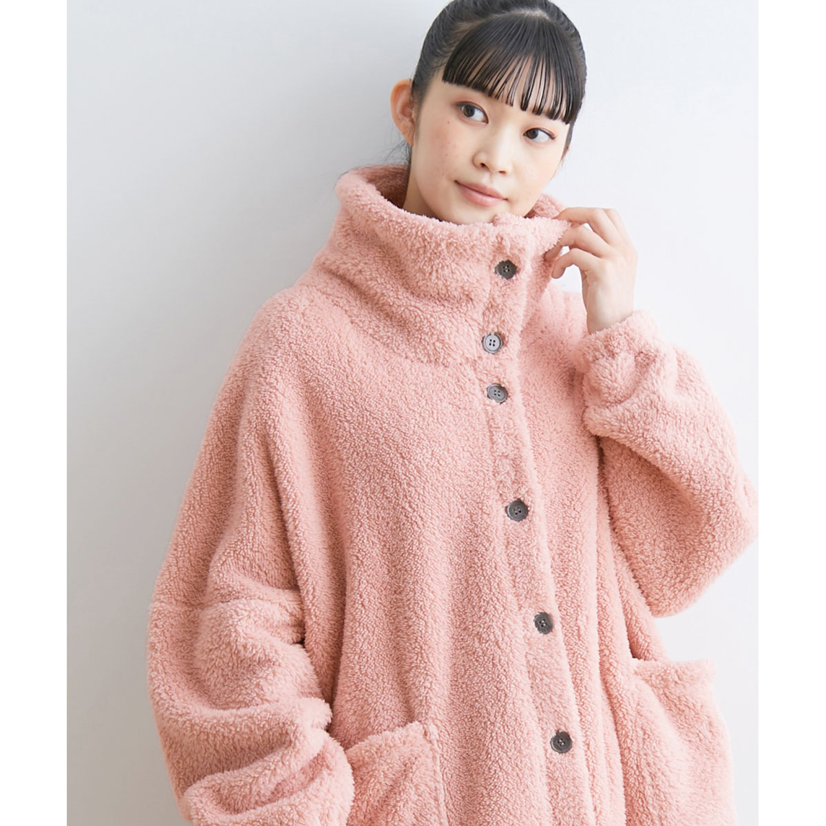 ニッセン ふわぬくマイクロファー首あったか前開きルームガウン M-LL nissen(PI-ピンク-M-LL)