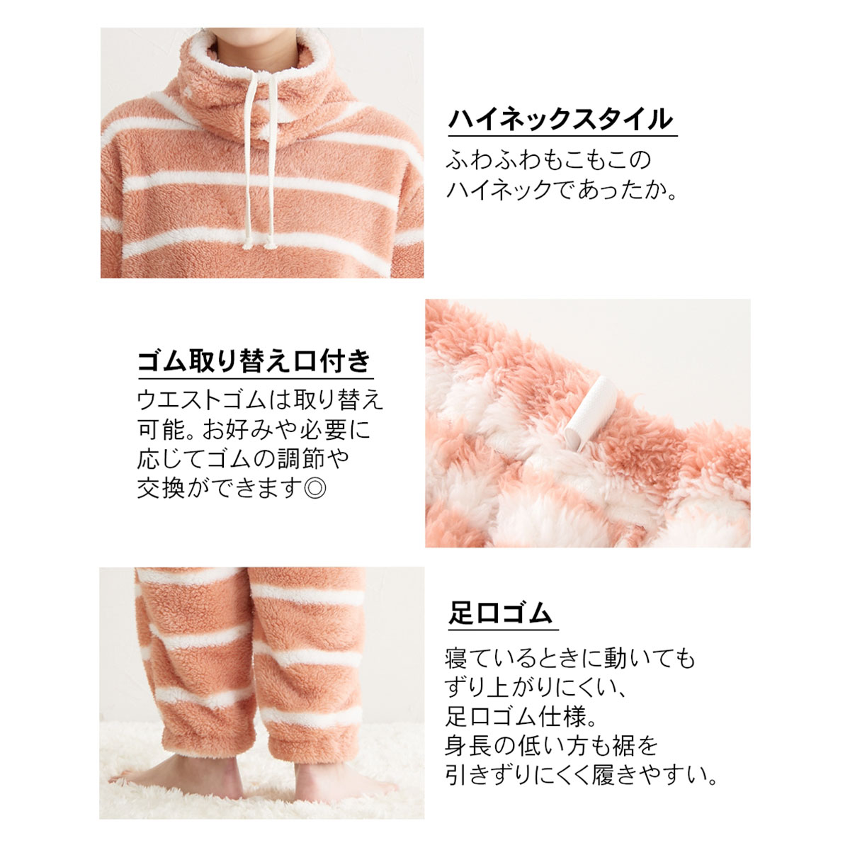 ふわぬく!マイクロファーハイネックルームウェア上下セット