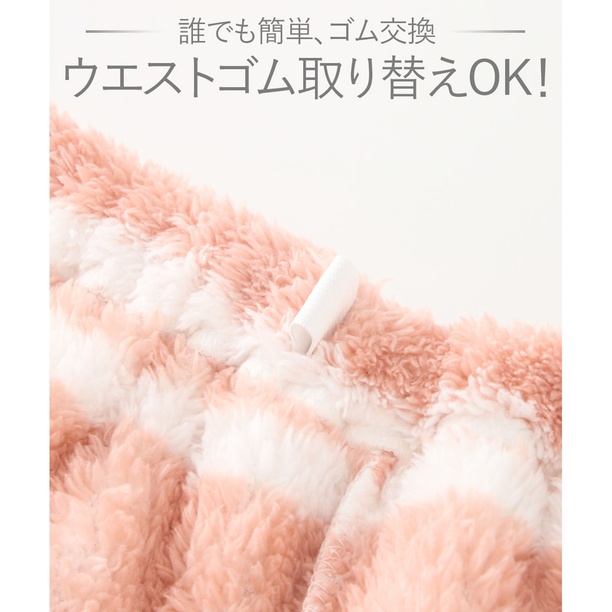 足口はゴム入りで、就寝時に裾がずり上がりにくく、冷気をシャットアウト。身長が低い方も引きずりにくいので安心です。ボトムのウエストゴムは交換可能です。