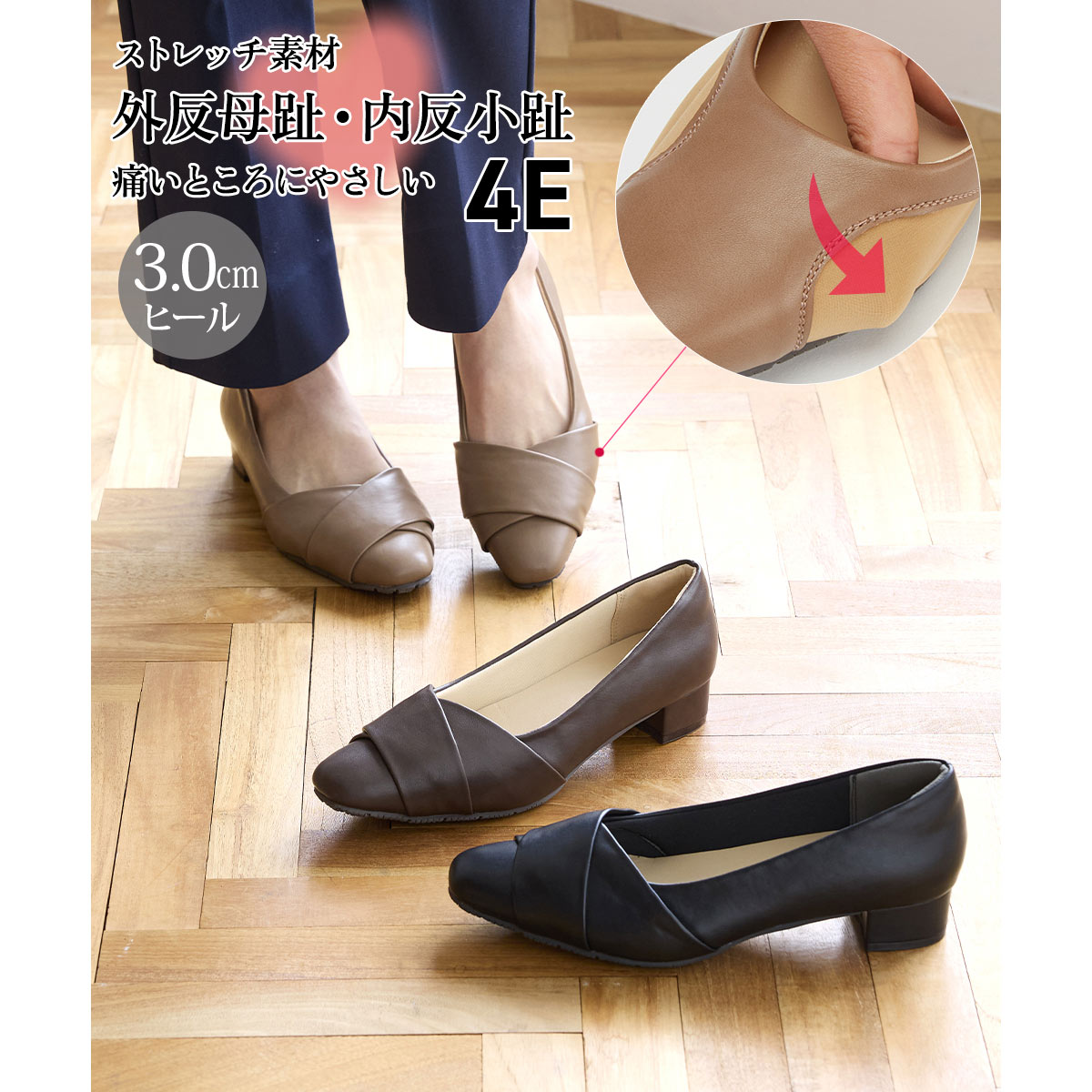 ゆったり幅広 痛いところにやさしい クロスターバンパンプス パッド入り 25-25.5cm ワイズ4E 痛くない 柔らかい nissen ニッセン