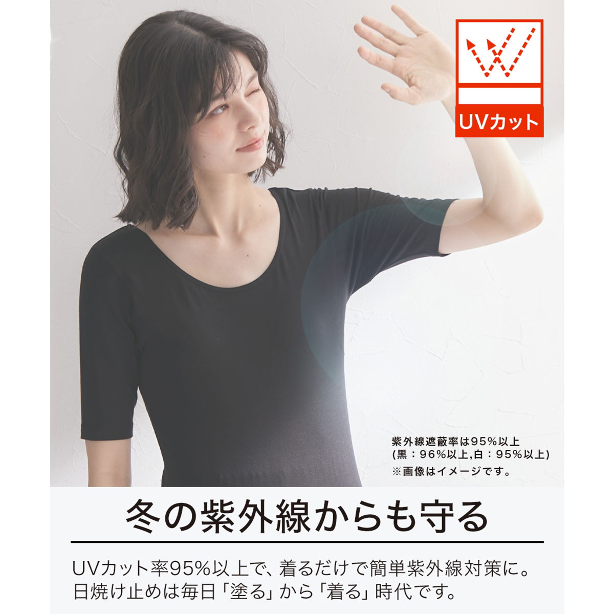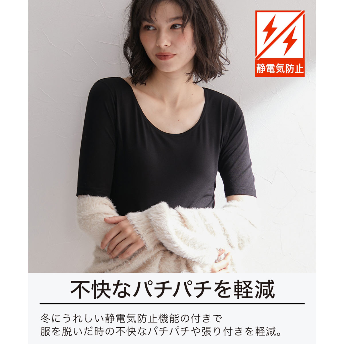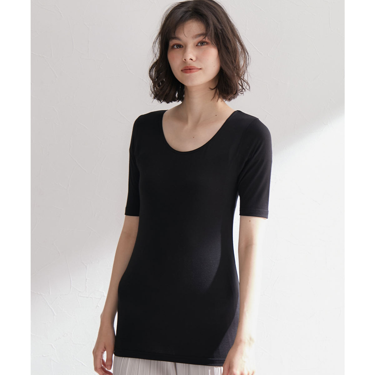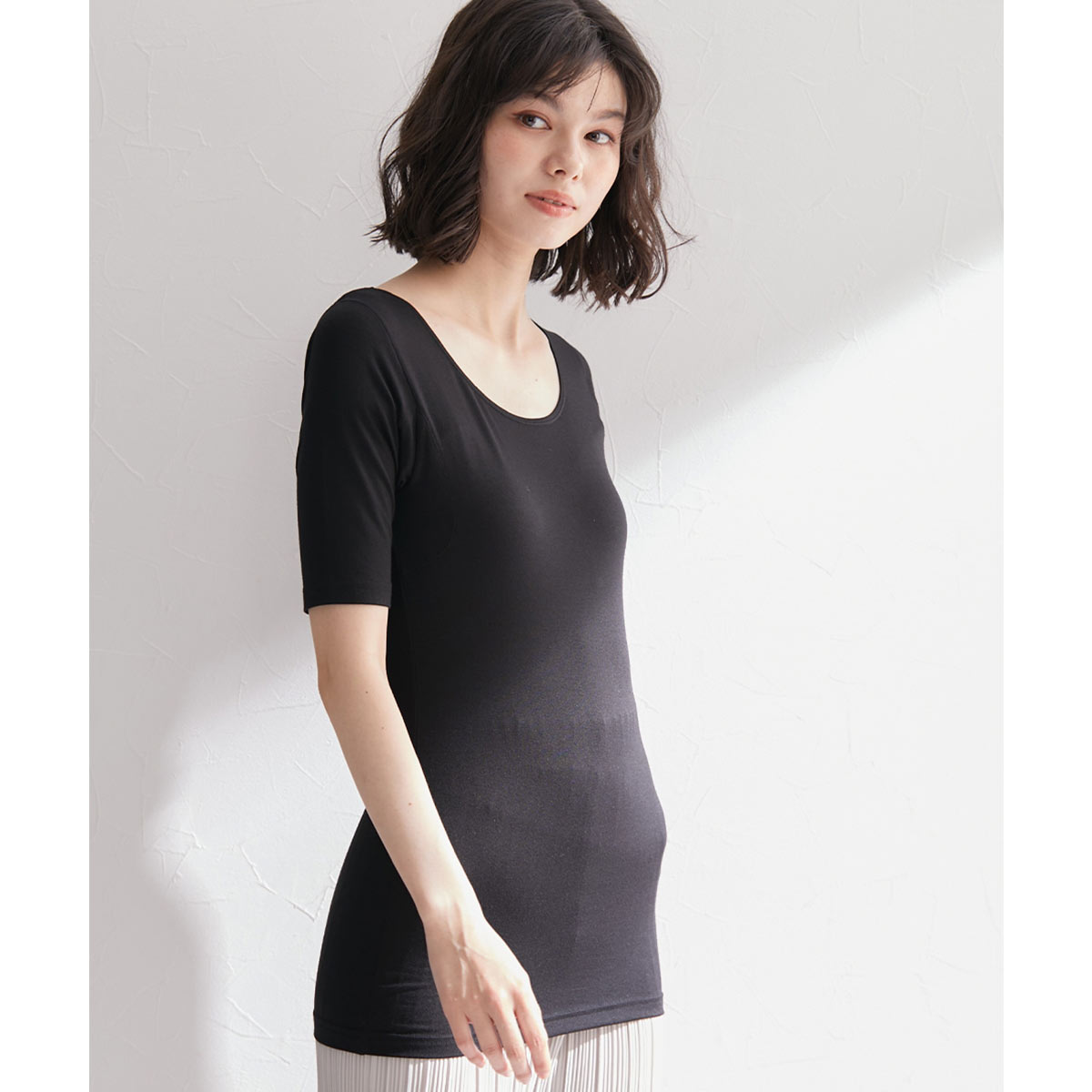 ニッセン 暑がりさんの冬インナー 襟ぐり広め丈長め半袖インナー LL 3L 2枚組 吸湿発熱 吸汗速乾 UVカット 静電防止 ウォームコアAIR(BK-ブラック-LL)