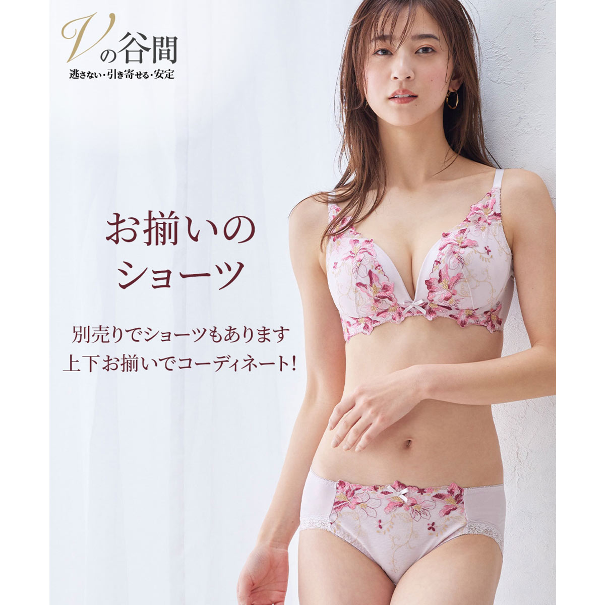トリンプとニッセンの共同企画から、新しいバストの形を提案する「イニシャルコレクション」のVの谷間Vにバストをひき寄せるブラジャー。