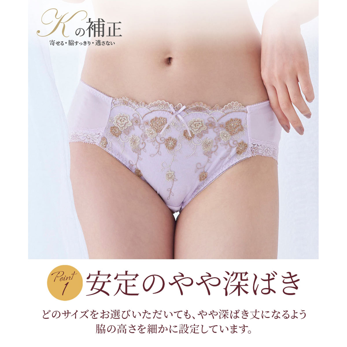 ニッセンとトリンプの共同企画バストをきれいに見せるブラジャーKの補正とコーディネートを楽しめるショーツです。