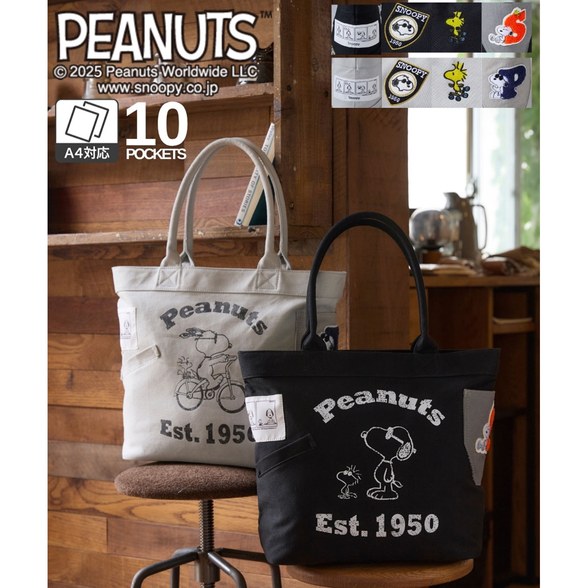 大人気のPEANUTSから、賑やかで大胆なプリントが可愛いトートバッグが登場。ヴィンテージライクなデザインと、キャンバス生地のカジュアルさが魅力です。