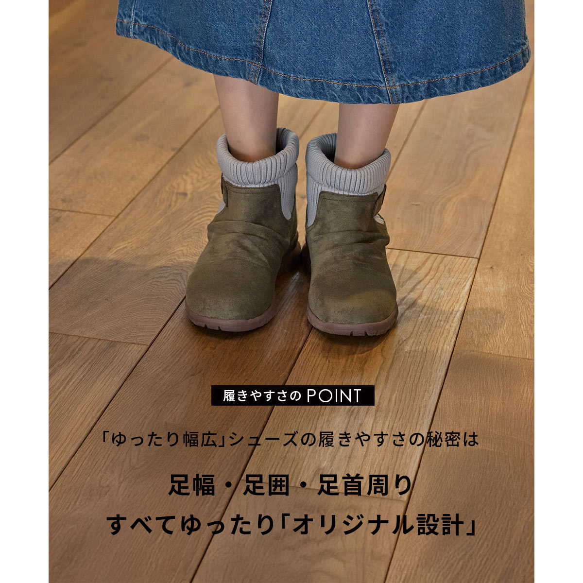 moz モズ ゆったり幅広 軽量リブニットショートブーツ 25-25.5cm ワイズ4E nissen ニッセン(KH-カーキ-LL)
