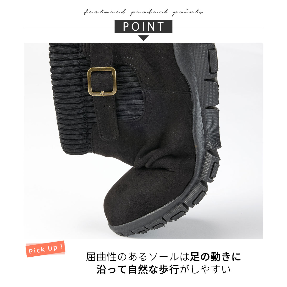 moz モズ ゆったり幅広 軽量リブニットショートブーツ 25-25.5cm ワイズ4E nissen ニッセン(BK-ブラック-LL)