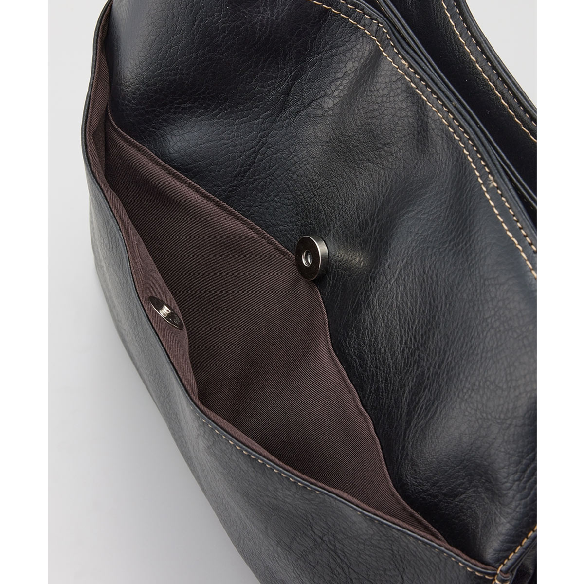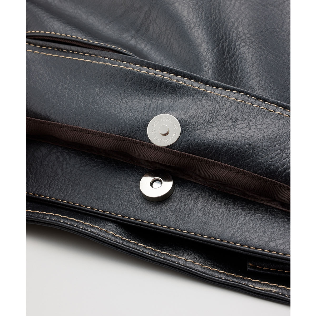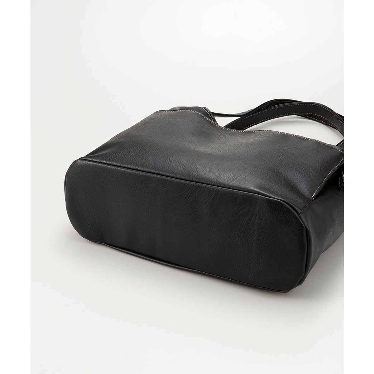やわらかく持ちやすいフェイクレザーとシンプルなデザインは、どんなスタイルにも合わせやすいです。