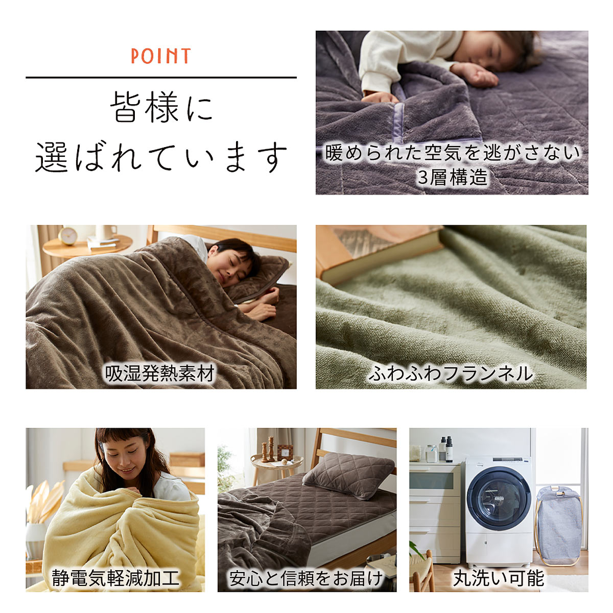 ぐっすり眠れる温かさ!吸湿発熱フランネル敷きパッド