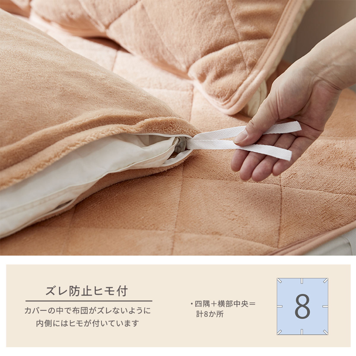 何も入れずにそのまま毛布として、または掛け布団を入れてカバーとしても使える2WAY仕様。季節に合わせて暖かさを調整できる、オールシーズン活躍する頼れるアイテムです。