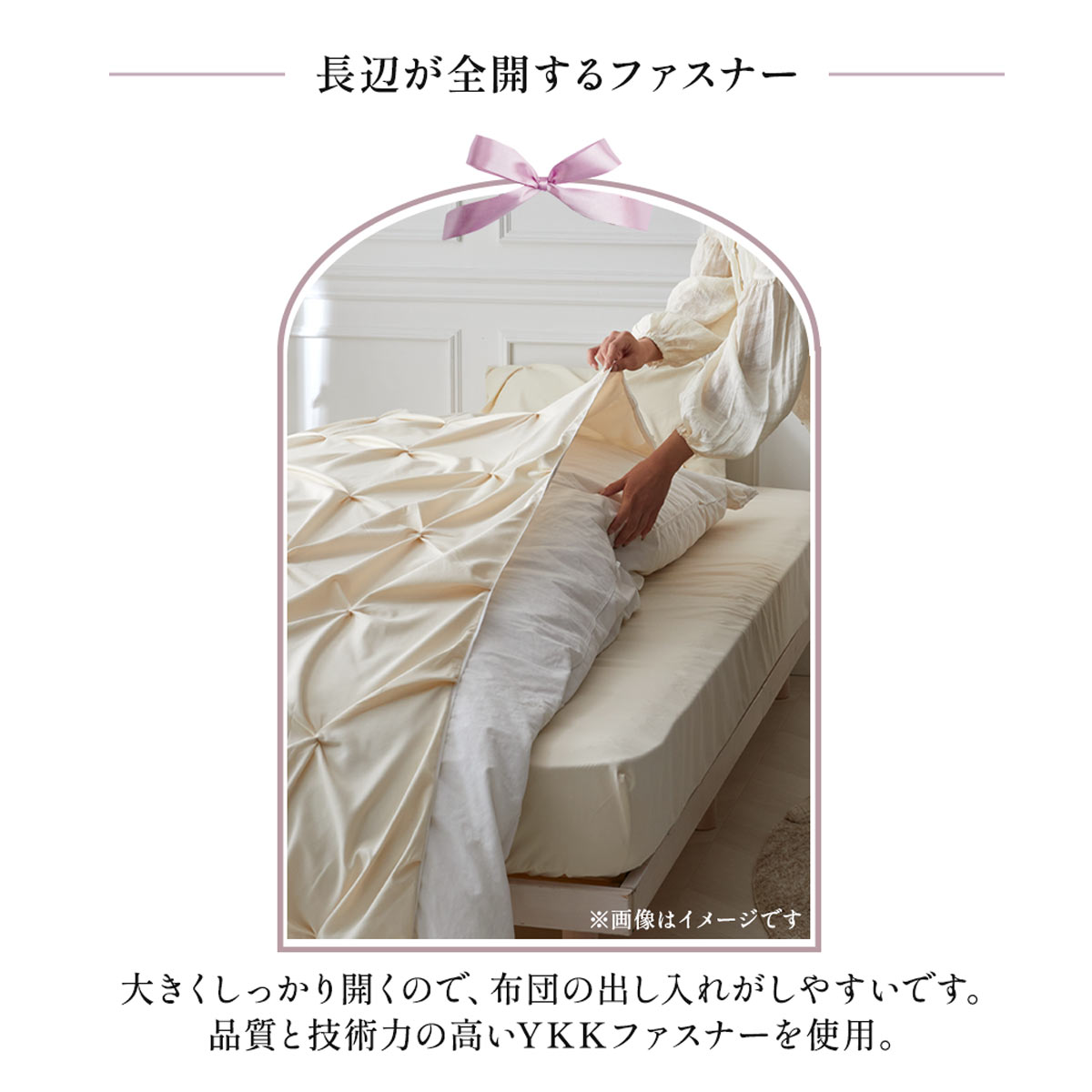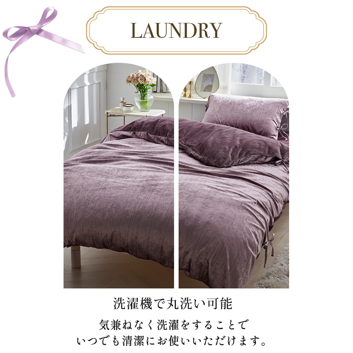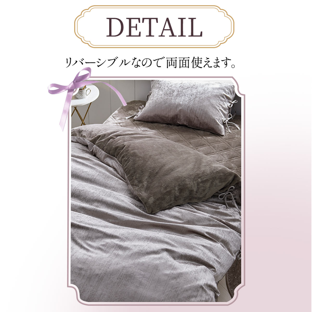 ベロア調リボン付き掛け布団カバー フルーエ 大人可愛い シングル nissen ニッセン