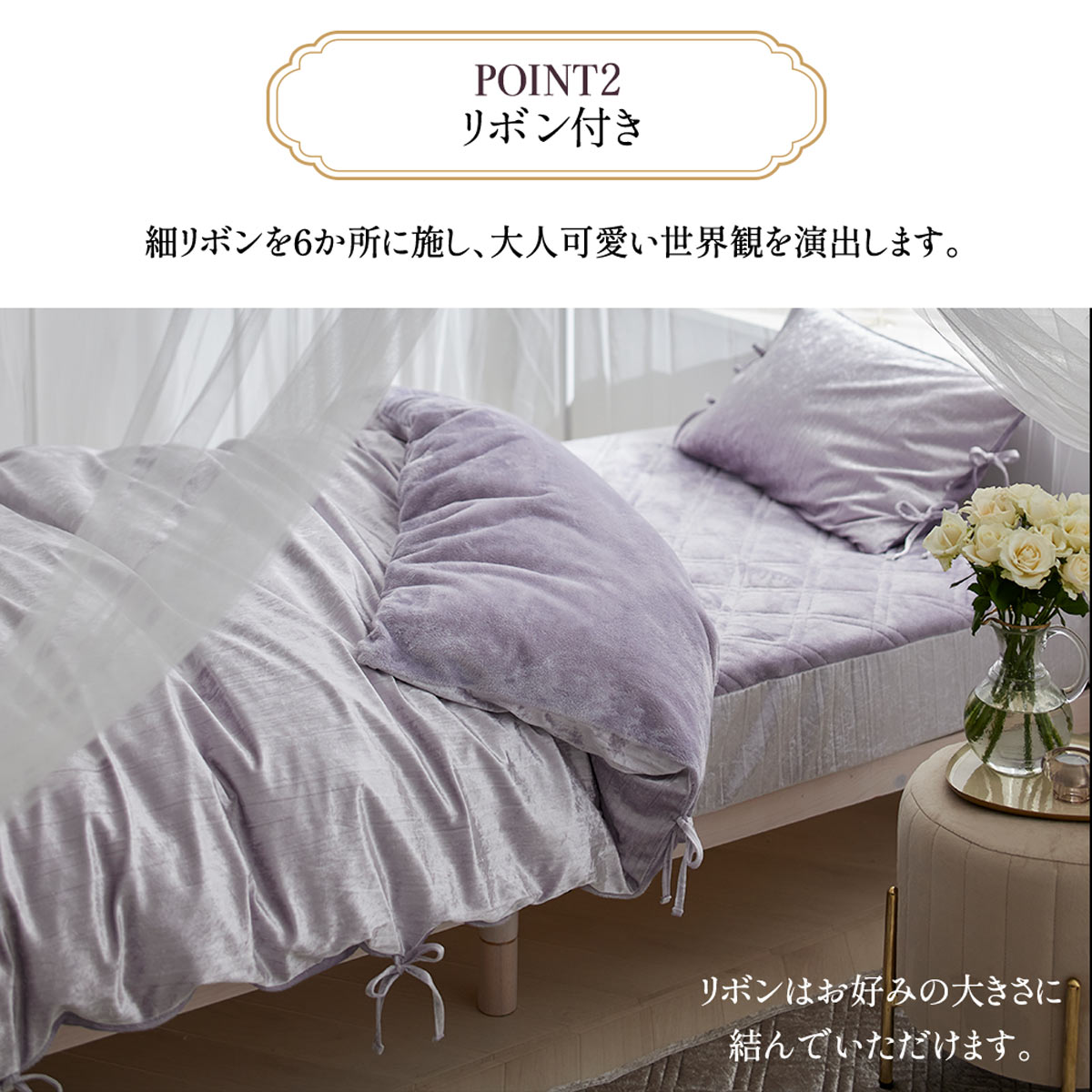 ベロア調リボン付き掛け布団カバー フルーエ 大人可愛い ダブル nissen ニッセン