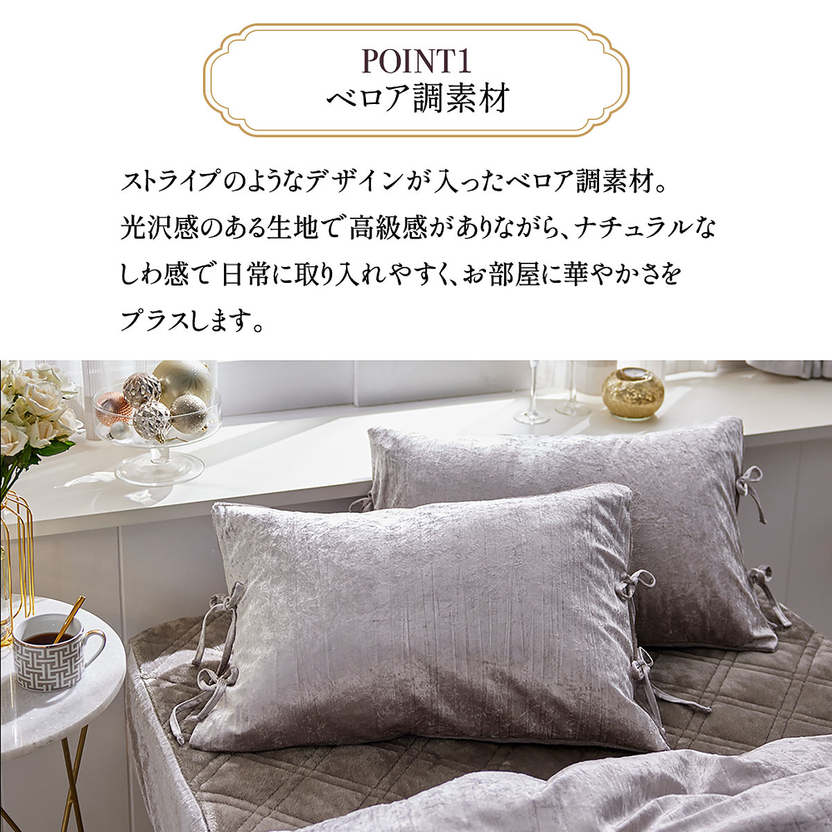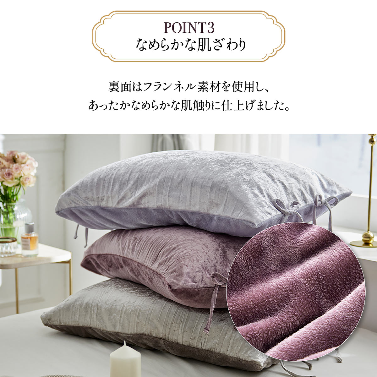 「毎日を可愛く、毎日を自分らしく。」 fleu;eが贈る、贅沢なベロア調の枕カバーです。
