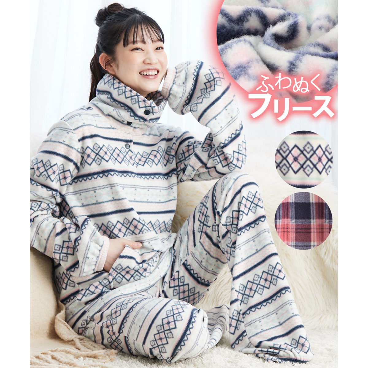 ふわぬくフリース手足首すっぽりルームウェア上下セット S M L nissen ニッセン