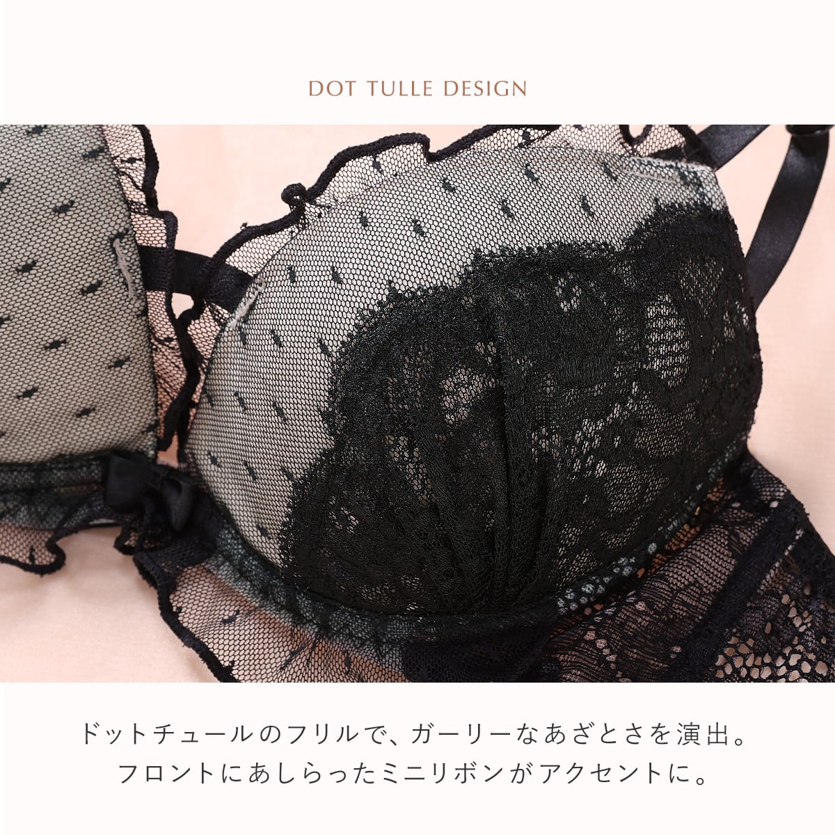 ブラジャー ショーツ セット モンシェルピジョン ドットチュール ABCDEF 谷間ブラ 盛れる 盛りブラ 大きいサイズ(BK-ブラック-A70-M)