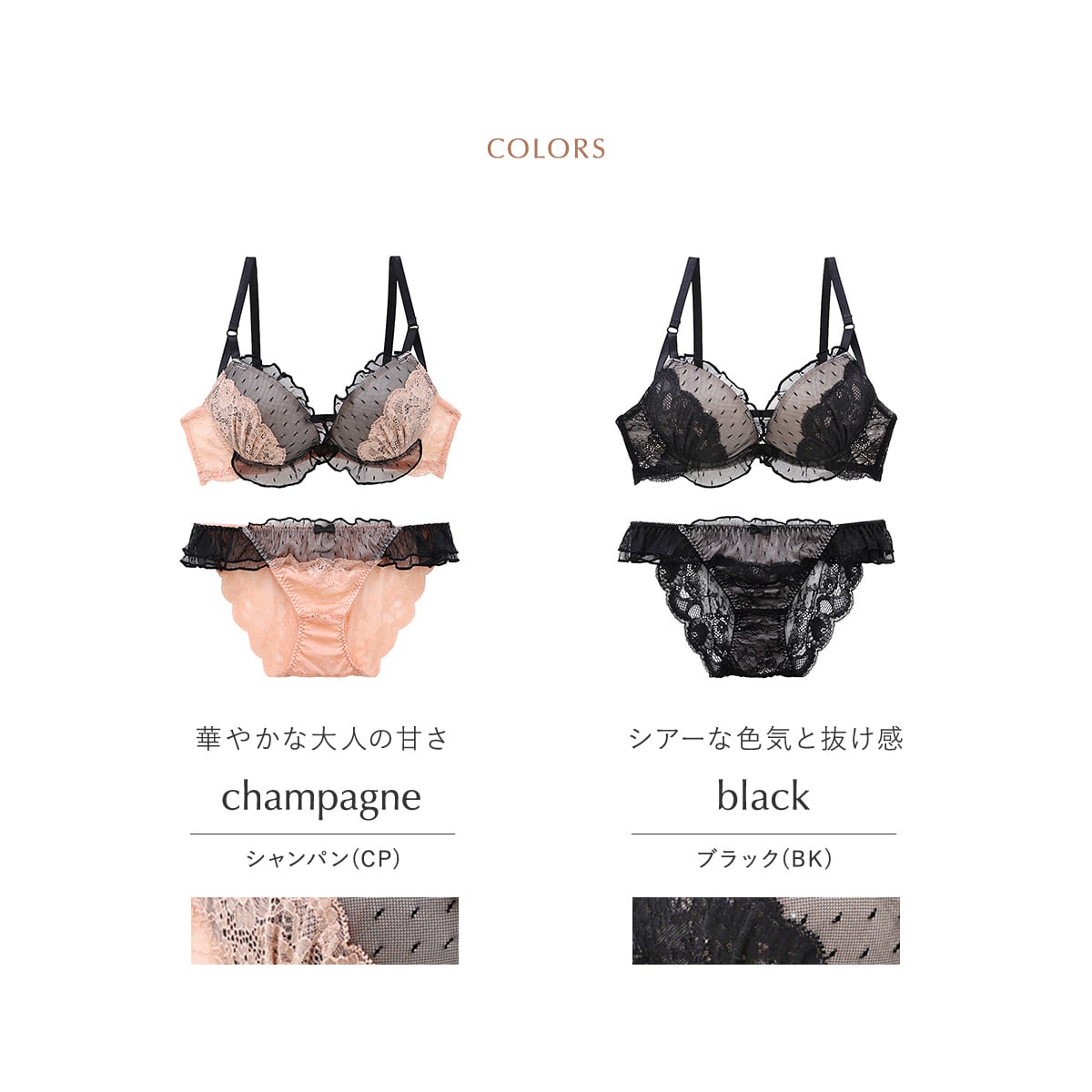 ブラジャー ショーツ セット モンシェルピジョン ドットチュール ABCDEF 谷間ブラ 盛れる 盛りブラ 大きいサイズ(CP-シャンパン-A70-M)