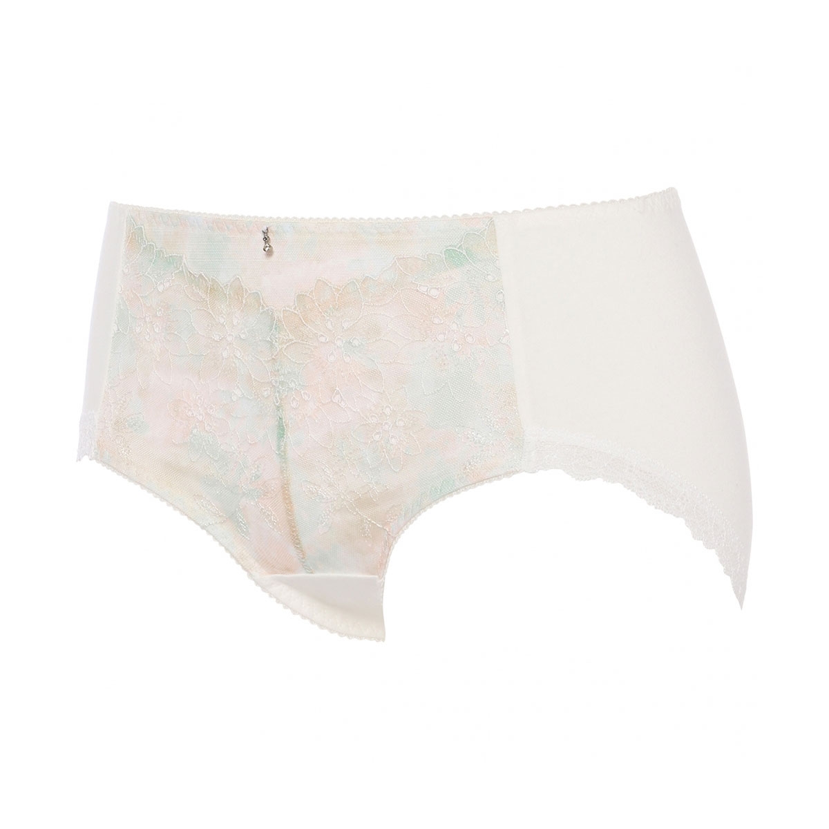 木漏れ日をイメージした繊細なボーラーレースに、ラメ糸のきらめきを添えた「トリンプ プレミアム」のコーディネートショーツです。夏らしい軽やかな質感と、プリントを重ねた奥行きのあるデザインが、洗練された大人の美しさを演出します。