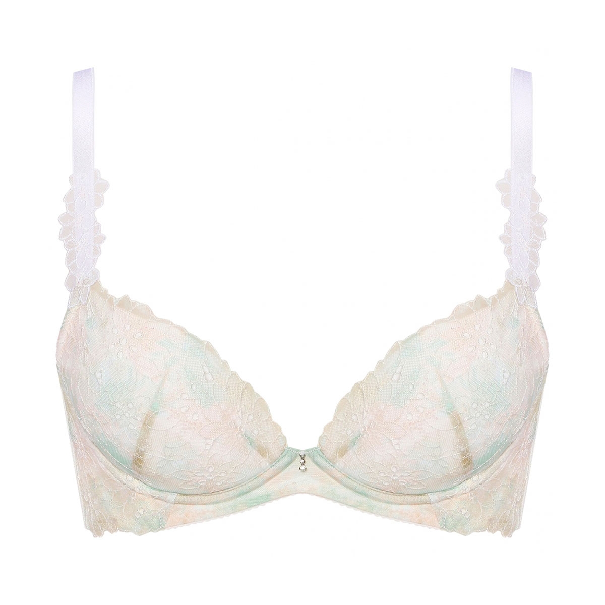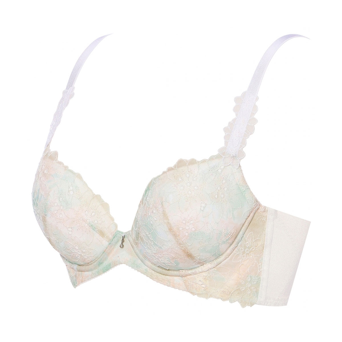 木漏れ日を表現した繊細なボーラーレースに、ラメ糸のきらめきを添えた「トリンプ プレミアム」の脇高ブラジャーです。夏らしい軽やかな質感と華やかなデザインが、洗練された大人の胸元を演出します。
