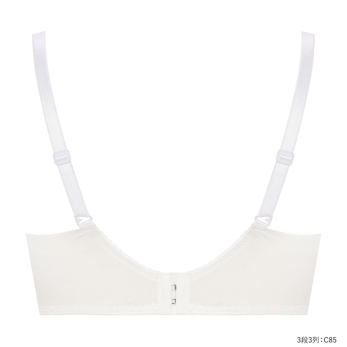 | 仕 様 | ホック数の数:2段3列:Bカップ、C65-80 3段3列:C85 ・3/4カップ ・パッド取外し:可能 ・肩紐取外し:不可 ・ワイヤー入り ・脇サイドボーン:あり
