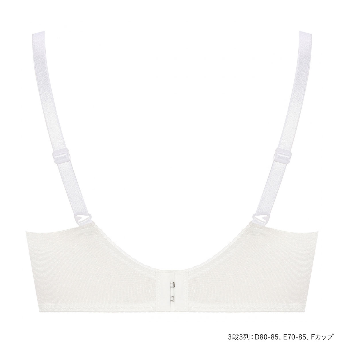 | 仕 様 | ホックの数:2段3列:D65-75、E65 3段3列:D80-85、E70-85、Fカップ ・3/4カップ ・パッド取外し:可能 ・肩紐取外し:不可 ・ワイヤー入り ・脇サイドボーン:あり