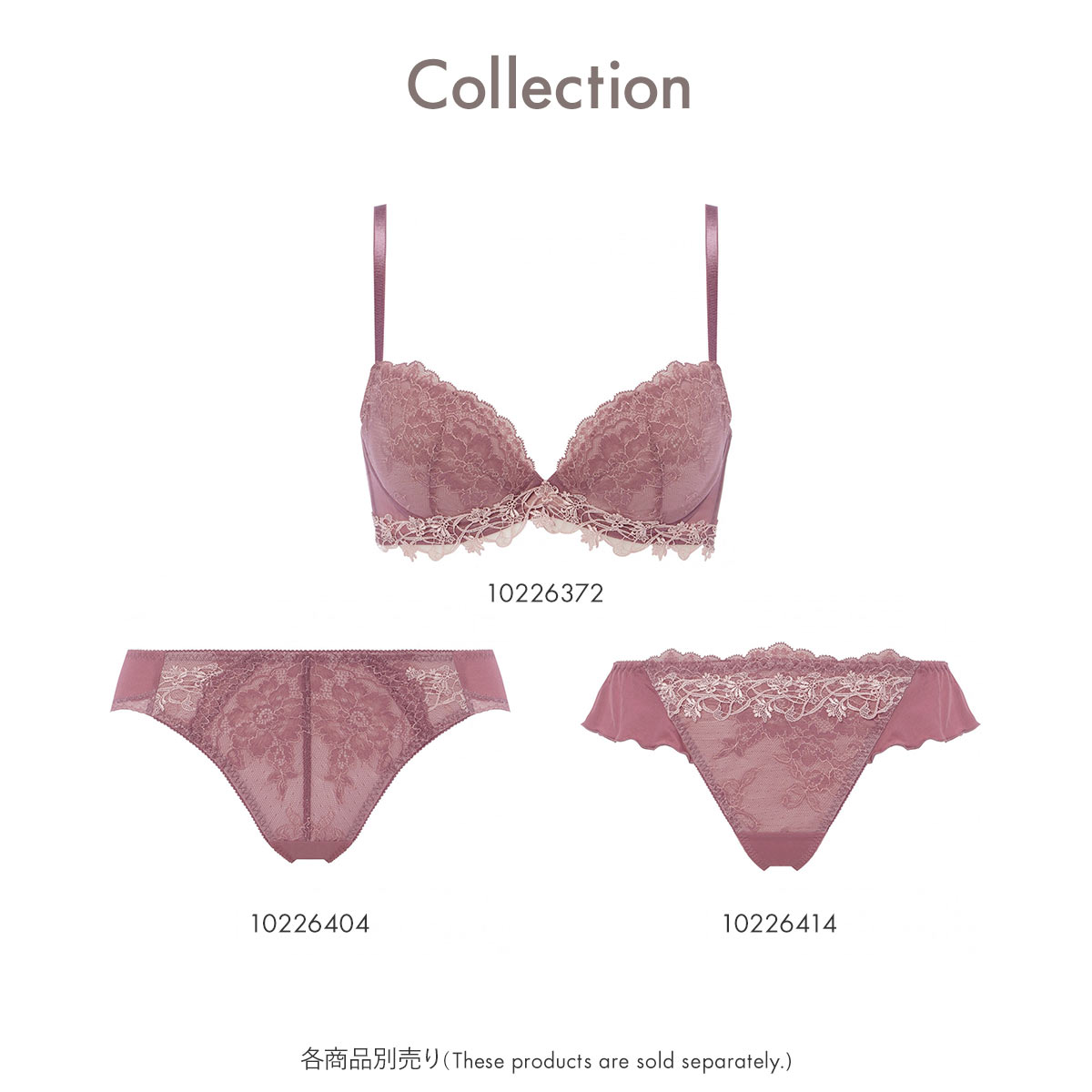 フロント脚口はハイレグカットで鼠径部の圧迫が少なく、脚のラインがきれいに見えるハイレグショーツ。バック脚口はレース仕様で、アウターにひびきにくく、くいこみにくいラクなはきごこちです。