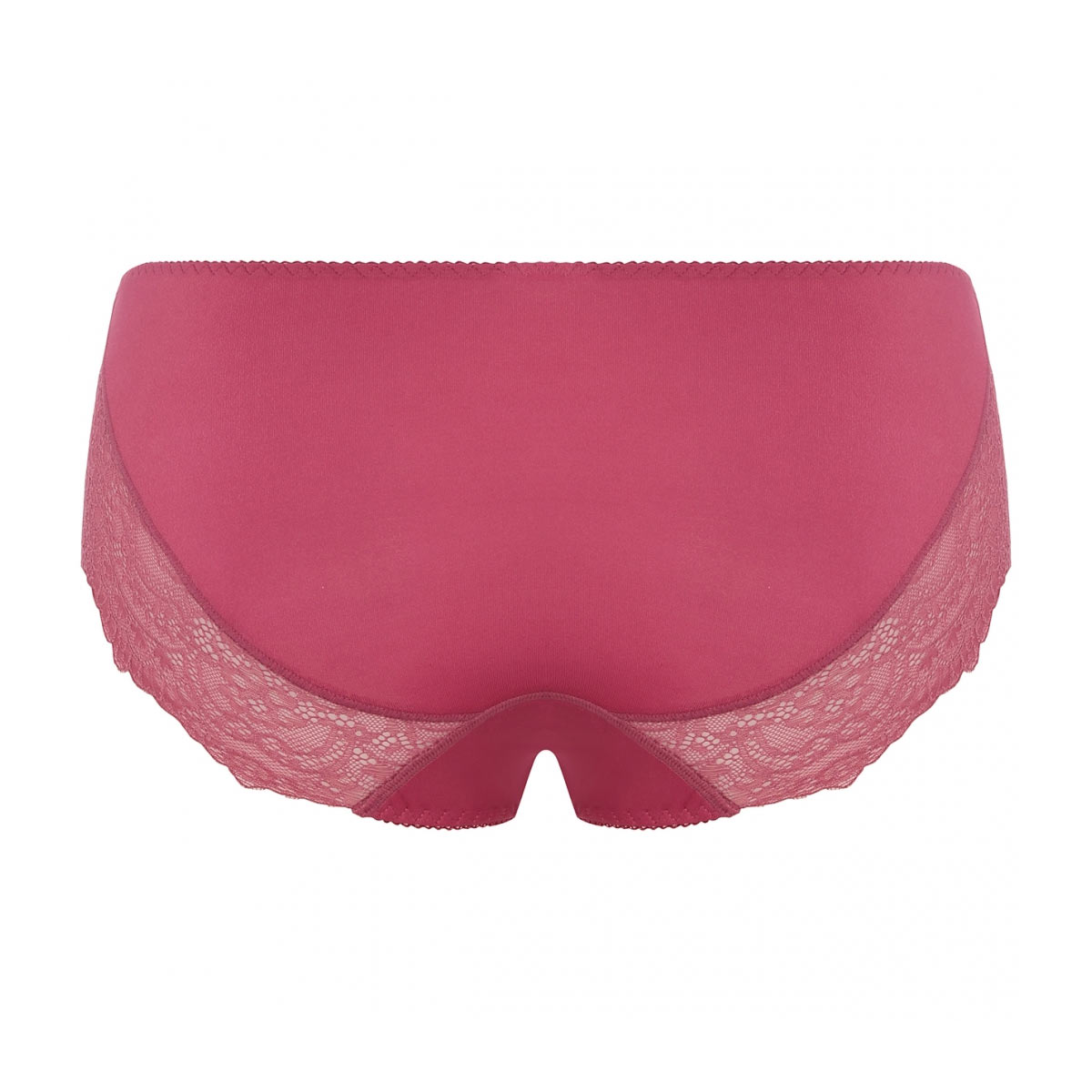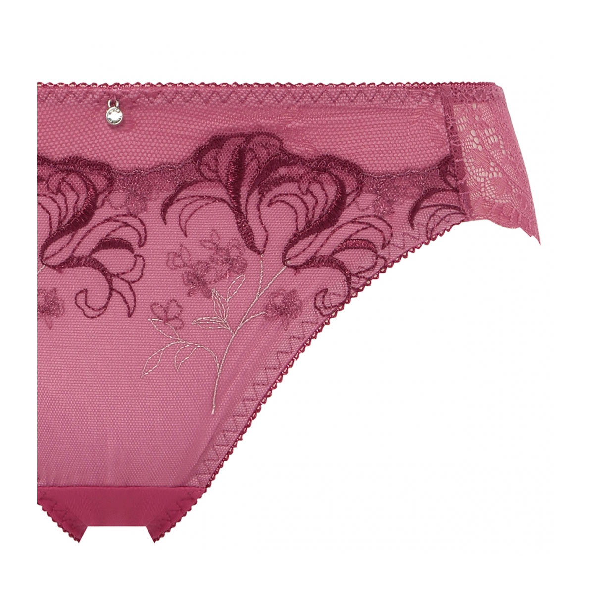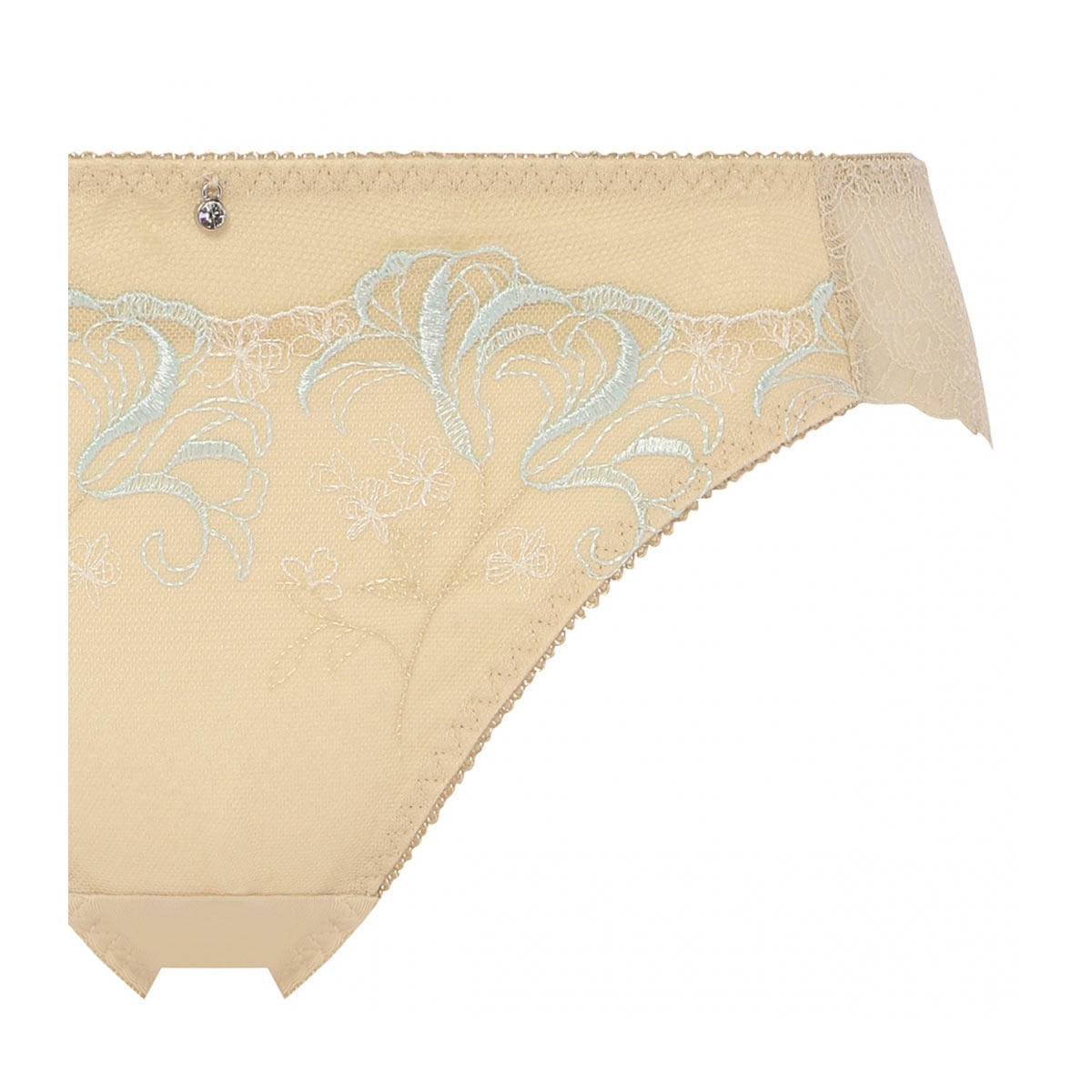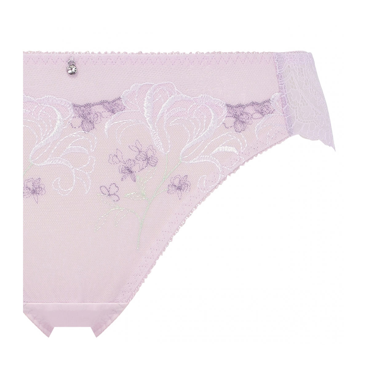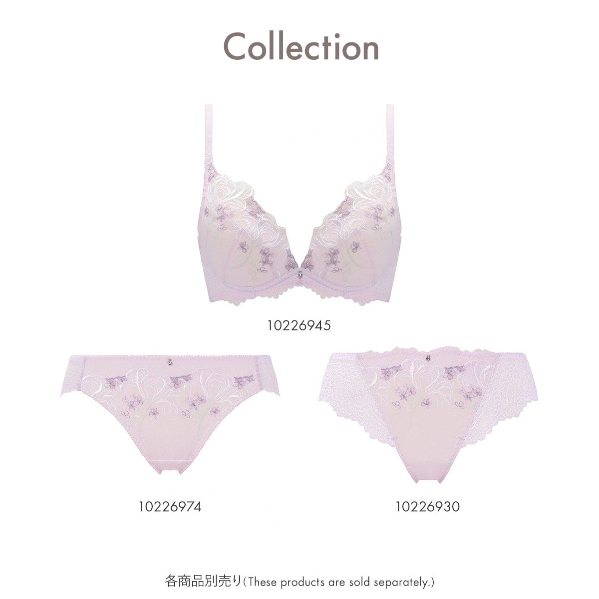 フロントはハイレグカットで鼠径部の圧迫が少なく、脚のラインがきれいに見えるハイレグショーツ。脚口はレース仕様で、アウターにひびきにくく、くいこみにくいラクなはきごこちです。