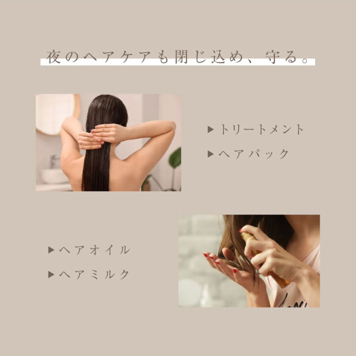着用して眠るだけで、就寝中の摩擦や乾燥を軽減し、翌朝の髪の絡まりや広がりを防ぎます。通気性に優れ蒸れにくいため、心地良さも抜群です。