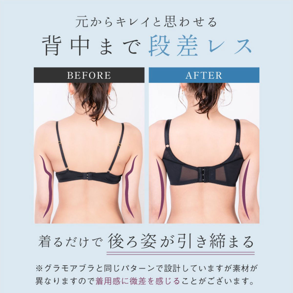消臭効果付きの素材を採用し、汗やニオイのお悩みに対応。グラモアブラの高い補整感と着心地はそのままに、軽く、薄く、蒸れにくい仕様を実現しました。