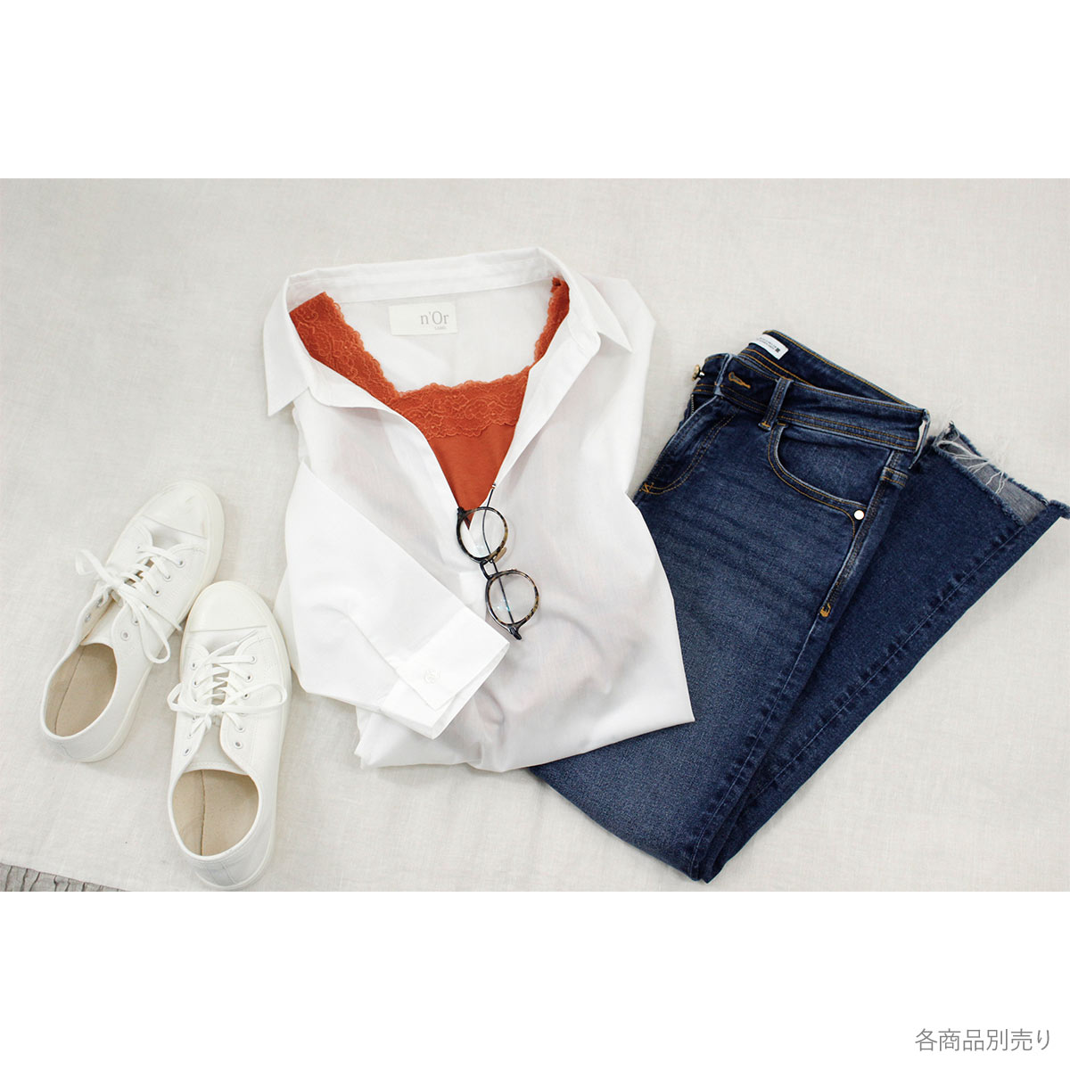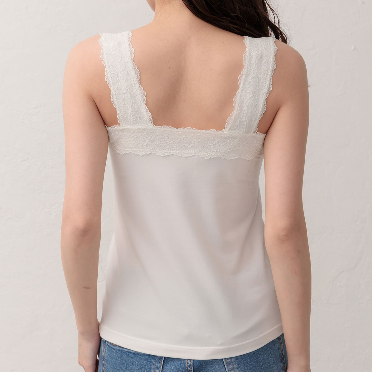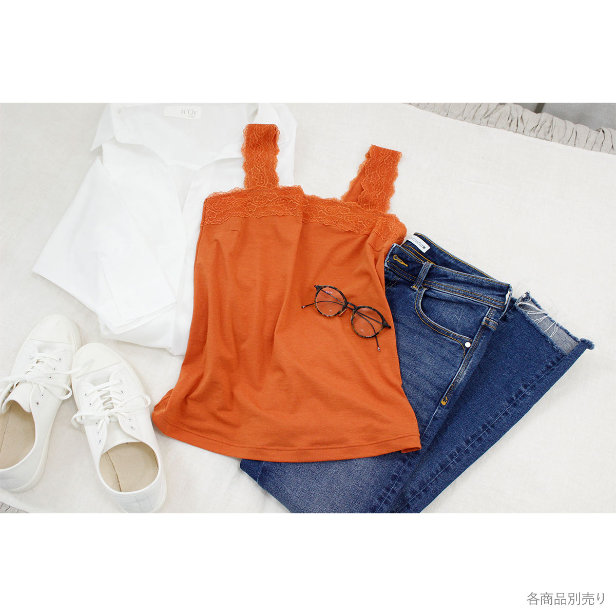 デコルテを綺麗に見せながら、レース素材によりファッション性アップ。暑い日にはこれ1枚でお家でのリラックスタイムにも。デコルテをキレイに見せるスクエアネックもポイントです。
