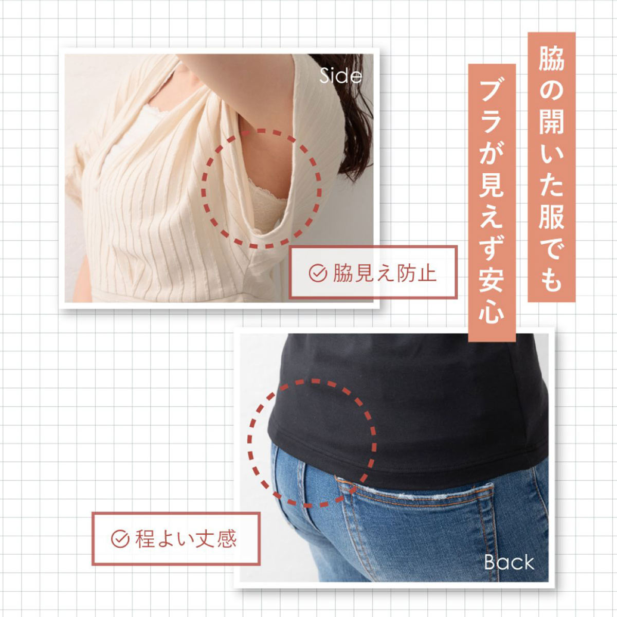 広めの幅でブラ紐をしっかり隠してくれるスクエアタンクトップです。
