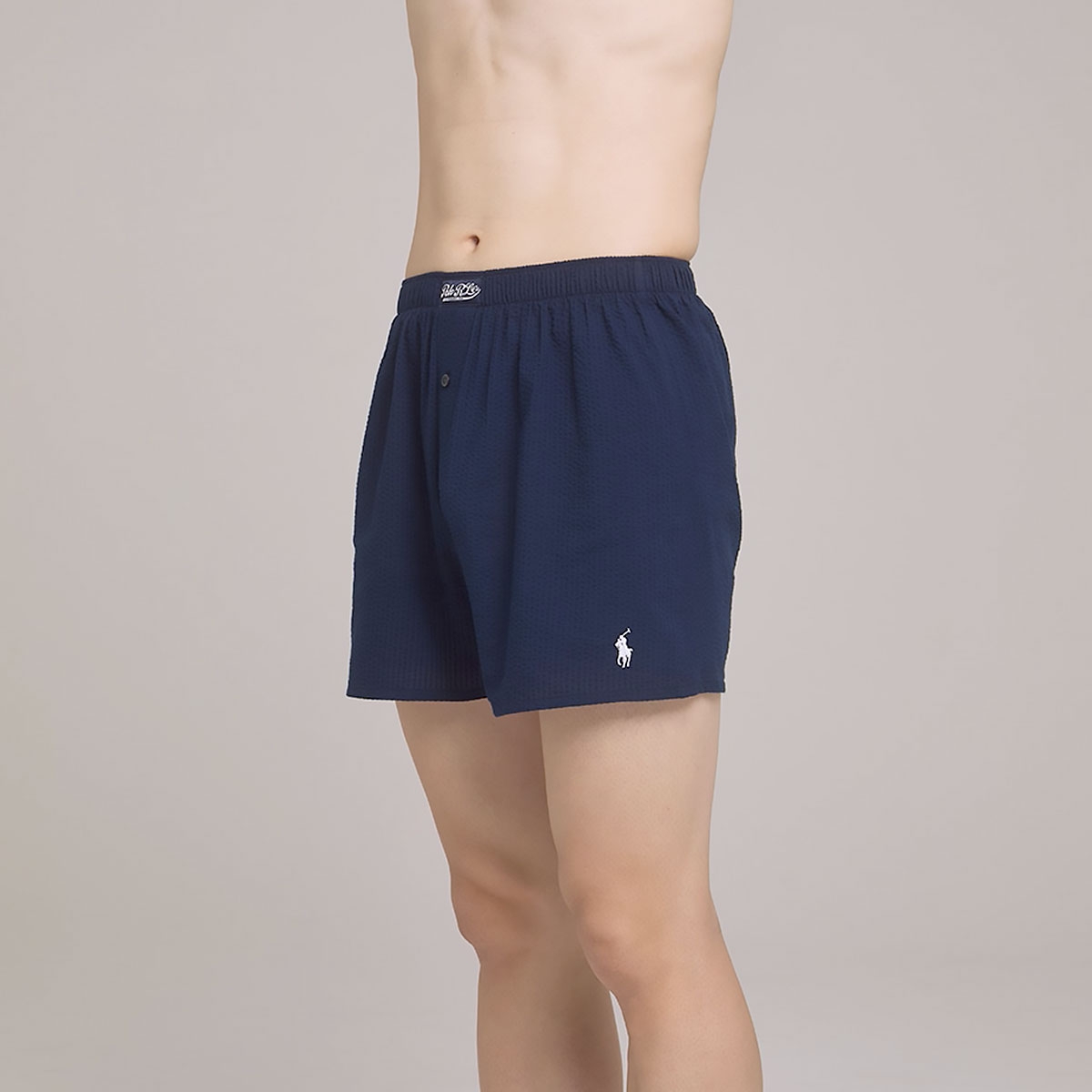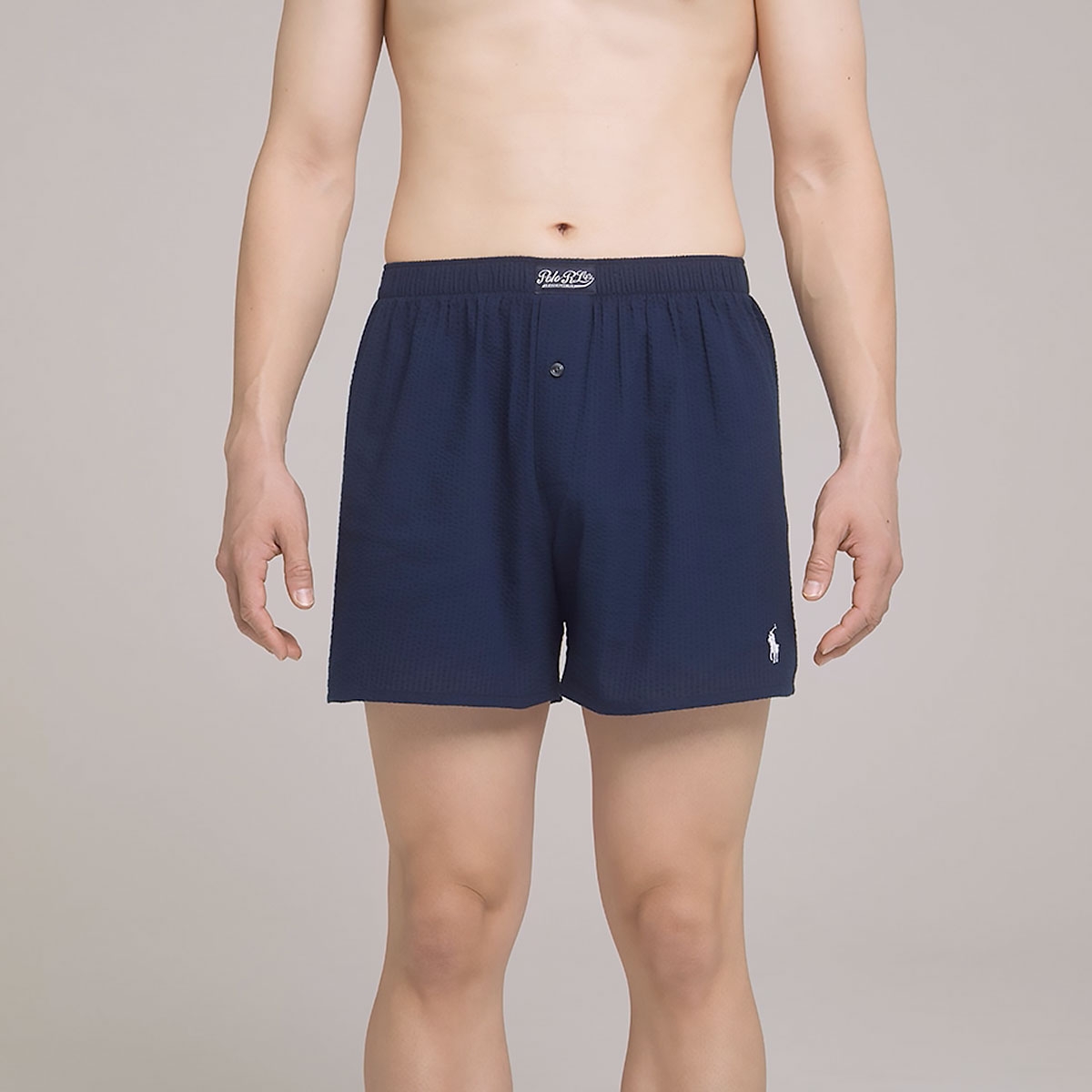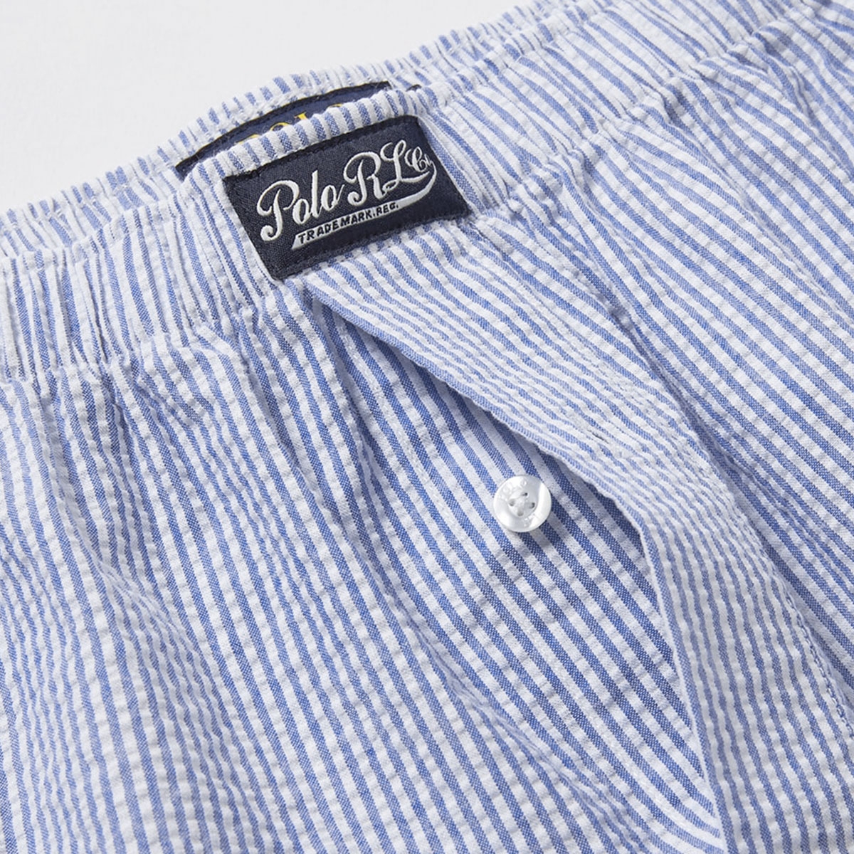 オーガニックコットン100%のシアサッカー生地を使用したトランクスです。生地表面に凹凸のある構造がもたらす、清涼感のある着心地が特長。爽やかなストライプ柄で、フロントセンターに縫い付けたラベルと、左裾に入れたブランドアイコンのポロプレイヤー刺繍がポイント。ブランドロゴを刻印したボタンもさり気ないこだわりです。前開き仕様。