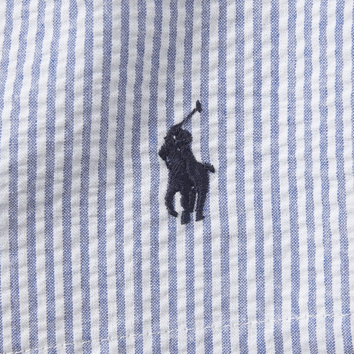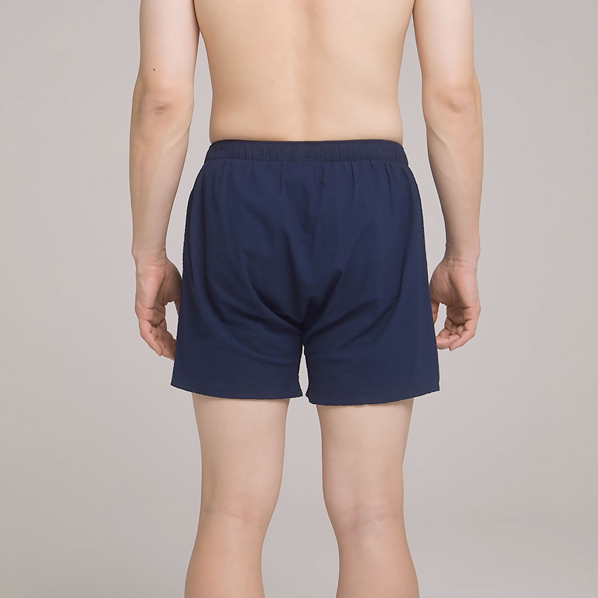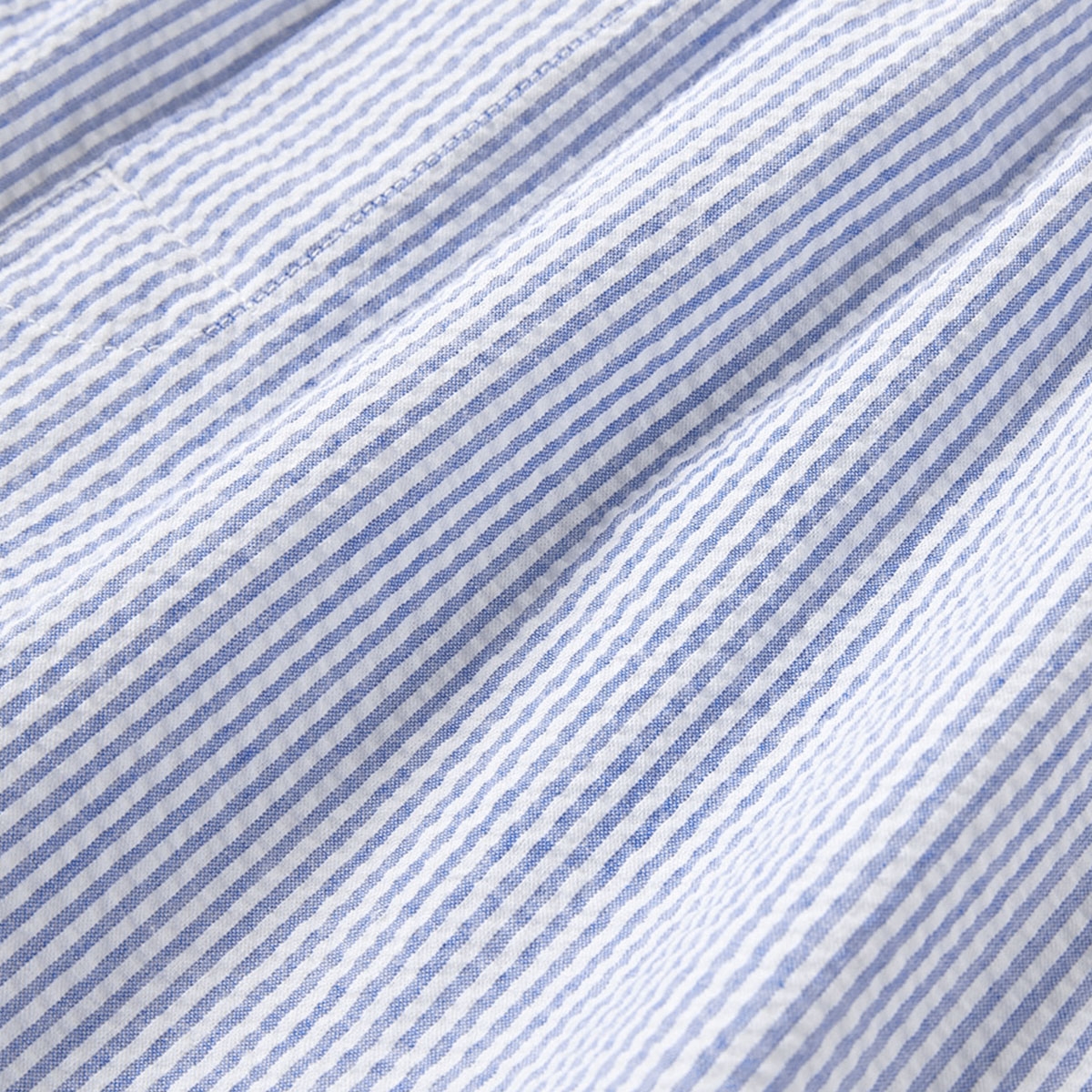 オーガニックコットン100%のシアサッカー生地を使用したトランクスです。生地表面に凹凸のある構造がもたらす、清涼感のある着心地が特長。爽やかなストライプ柄で、フロントセンターに縫い付けたラベルと、左裾に入れたブランドアイコンのポロプレイヤー刺繍がポイント。ブランドロゴを刻印したボタンもさり気ないこだわりです。前開き仕様。